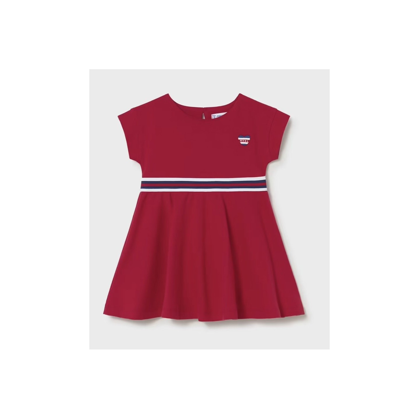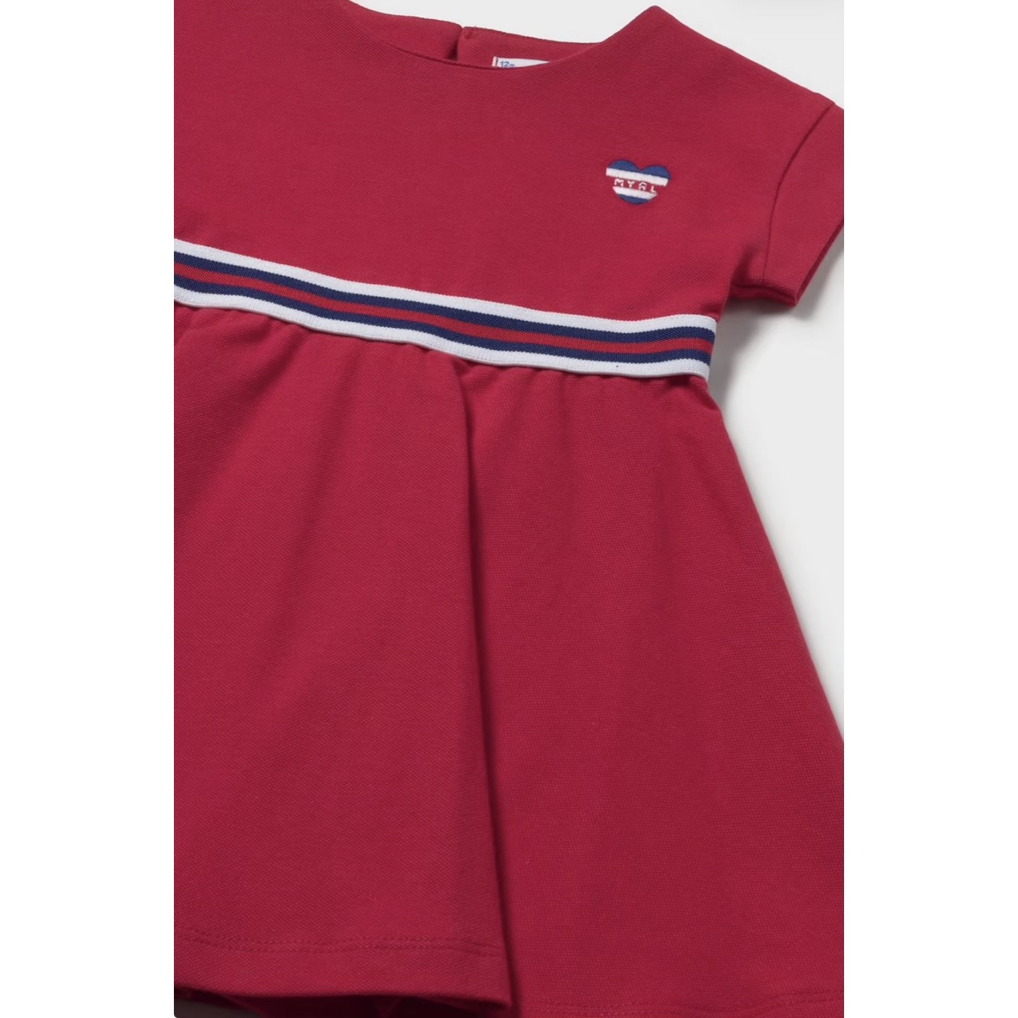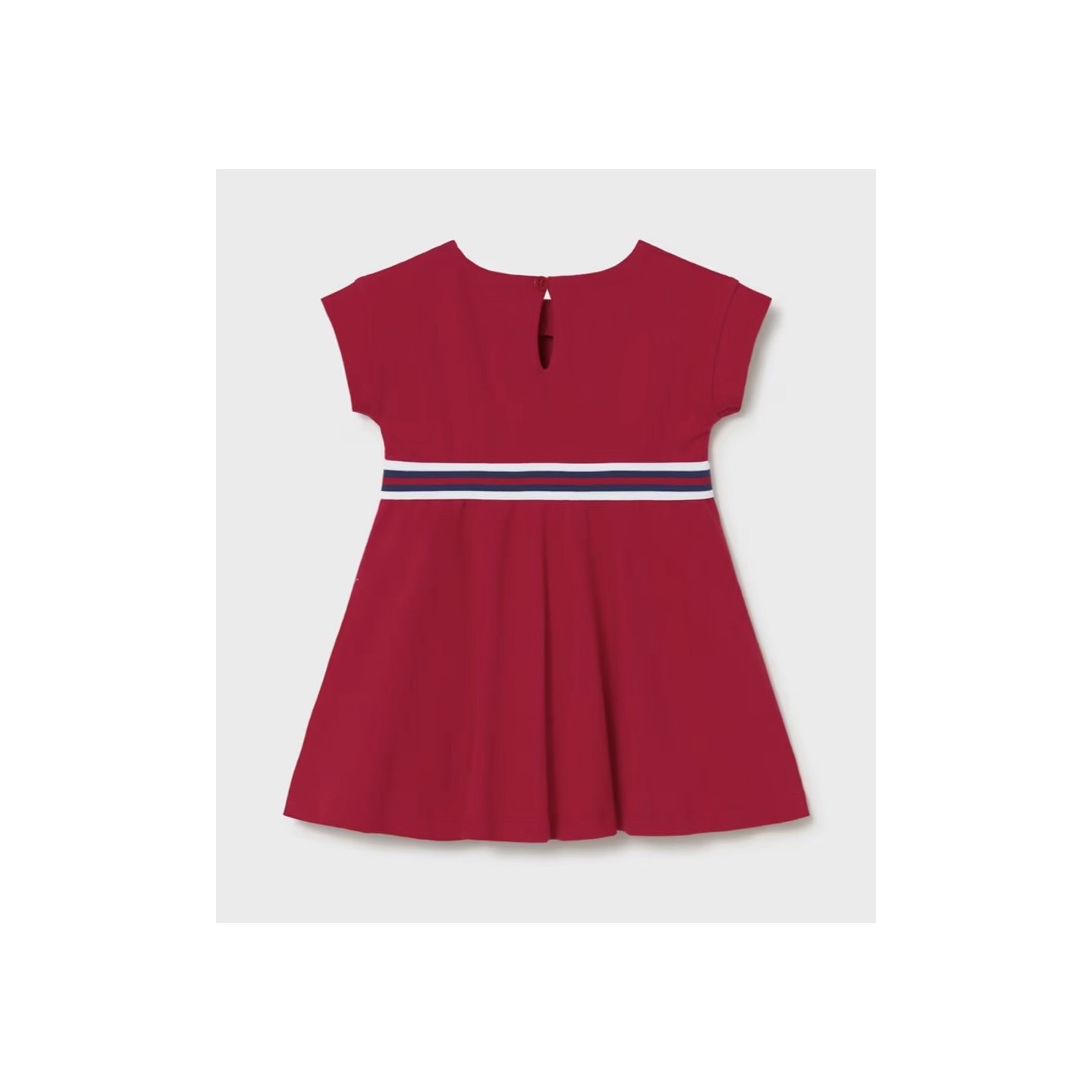 Robe bébé Mayoral rouge ou blanche avec détail contrasté.